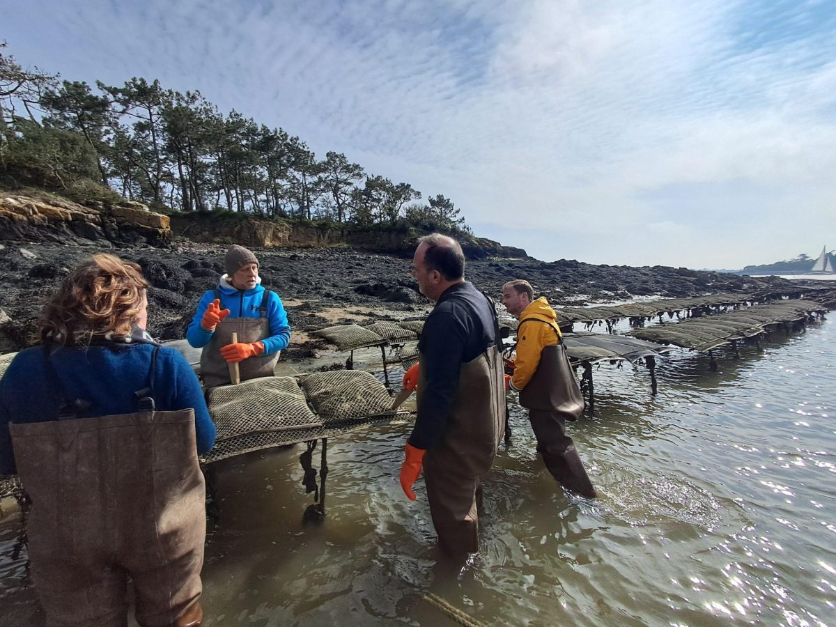 Fidèles à notre approche ancrée dans les réalités territoriales, nous avons également pris le temps de nous immerger dans l’écosystème local du Golfe du Morbihan. Une expérience en mer, aux côtés d’Ivan Selo ostréiculteur (depuis 5 générations ! 1869), nous a permis de découvrir les parcs à huîtres et d’appréhender les enjeux liés aux filières maritimes, avant de partager un moment convivial autour d’une dégustation.
